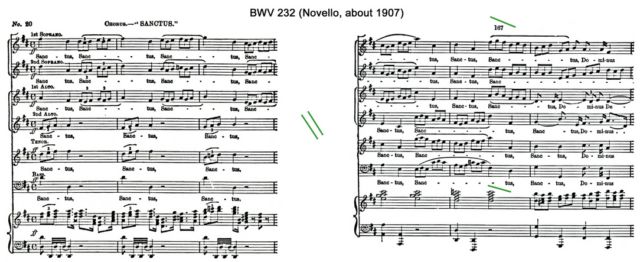 Bach's Mass in B minor: consecutive double octaves in the Sanctus Angelic octaves | Back in the 1970s, when rehearsing the B minor Mass BWV 232 with the Sheffield Bach Choir, the late Roger Bullivant would have us repeat a few bars in the middle of the Sanctus. Finding a fault in the score, Roger would say in his inimitable way: 'mmm, he'd surely gave corrected that if he'd seen it; it's evidence that the work was never performed'. At the time, it wasn't generally known that the work was given by Bach, on several occasions.