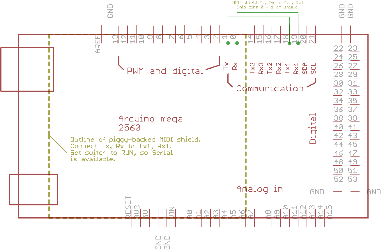 For the moment my application does need a computer to be connected (unless you have a MIDI-merger box), and a computer is useful for sending commands and displaying the results. I've also kept, as an option, the midiTranslator hardware (display and buttons), which can still be used to change channels and reset the Arduino. I had to change the connections to suit the Mega and the MIDI shield. The Arduino has no way of "knowing" whether or not the hardware is connected.